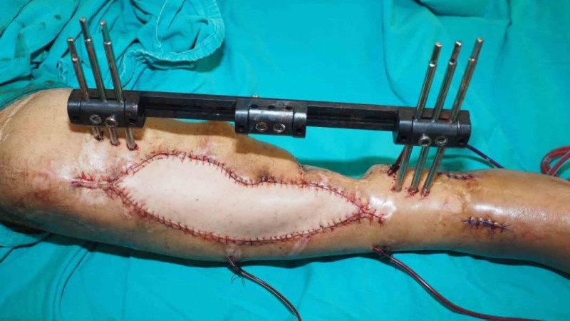 Kütahya'da yaşayan bir hasta, geçirdiği travma sonucu oluşan açık ve parçalı tibia kırığı nedeniyle 1,5 yıldır süren tedavi sürecinde zorlu bir dönem yaşadı. Daha önceki 12 ameliyat girişimi; kemik tespiti ve cilt dokusunun kapatılması çabalarına rağmen istenilen başarıyı sağlamadı. Bu durum, hastanın bacağını kaybetme riskini her geçen gün artırdı.