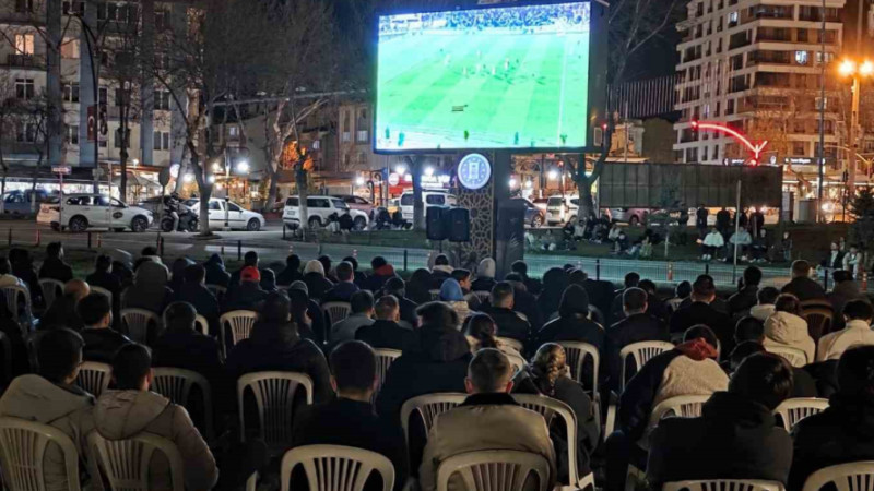 A Milli Futbol Takımı, FIFA Dünya Kupası play-off finalinde deplasmanda Kosova ile karşı karşıya geldi. Kritik müsabaka için Kütahya Belediyesi tarafından belediye binası önüne dev ekran kuruldu. Alanı dolduran yüzlerce vatandaş, ellerinde Türk bayraklarıyla ay-yıldızlı ekibe destek verdi. Karşılaşmayı vatandaşlarla birlikte izleyenler arasında Kütahya Belediye Başkanı Eyüp Kahveci de yer aldı.