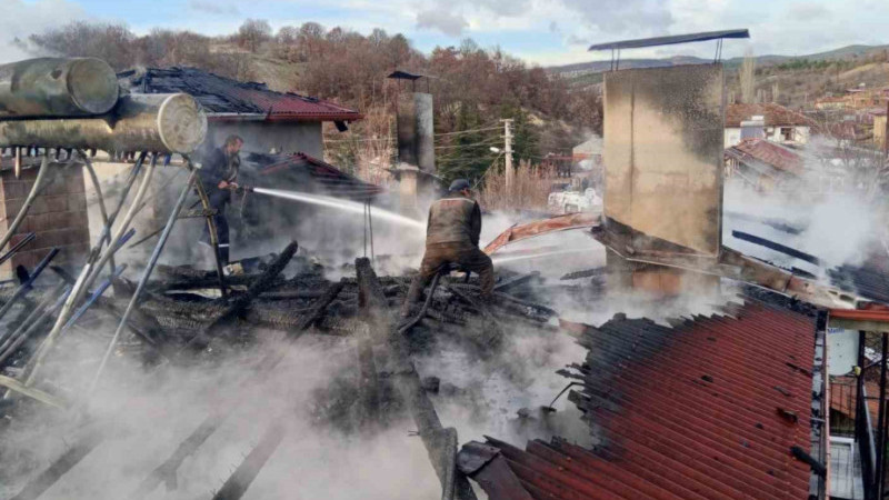 Kütahya’nın Şaphane ilçesinde çıkan yangında iki katlı bir evin çatısı hasar gördü.