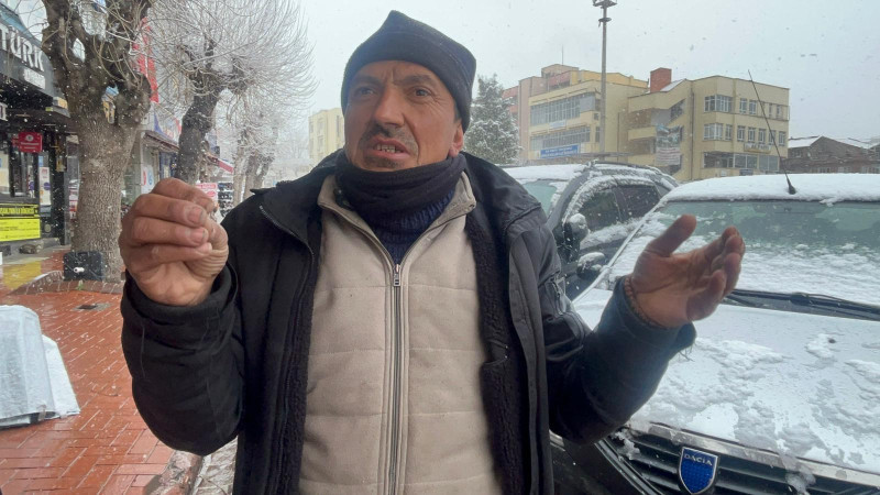 Tavşanlı Cumhuriyet Meydanı’nda uzun yıllardır kemer, cüzdan ve tespih satarak geçimini sağlayan Tamer Gök, kışın gelmesi ve karın memlekete düşmesiyle birlikte tezgahının yanına sobasını kurdu. Dondurucu soğuklara rağmen ekmek parası için mesaisine devam eden Gök, hem samimi açıklamalarıyla hem de meydandaki soba başı sohbetleriyle dikkat çekiyor.