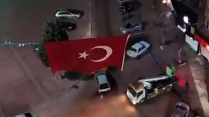 Akkaya’nın açıklamasının ardından Ülkü Ocakları mensupları tarafından Cumhuriyet Meydanı’na metrelerce uzunluğundaki dev Türk bayrağı asıldı. Çevredeki vatandaşlar da alkışlarla destek vererek bayrak hassasiyetine ortak oldu.
