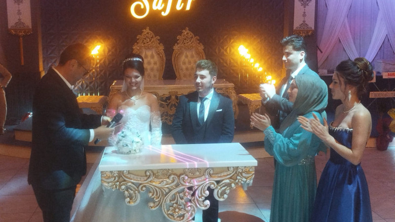 Nikah merasiminde ise heyecan doruktaydı. Çiftin nikahını, bizzat Belediye Başkanı Ali Kemal Derin kıydı. Başkan Derin, genç çifte bir ömür boyu mutluluklar dileyerek evlilik cüzdanını takdim etti.