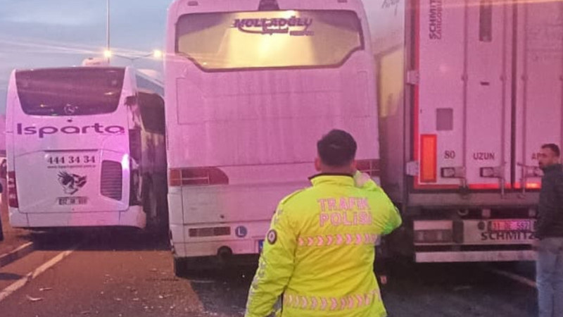 Kütahya’da işçi servisi, tır ve yolcu otobüsünün karıştığı trafik kazasında 3 işçi yaralandı.