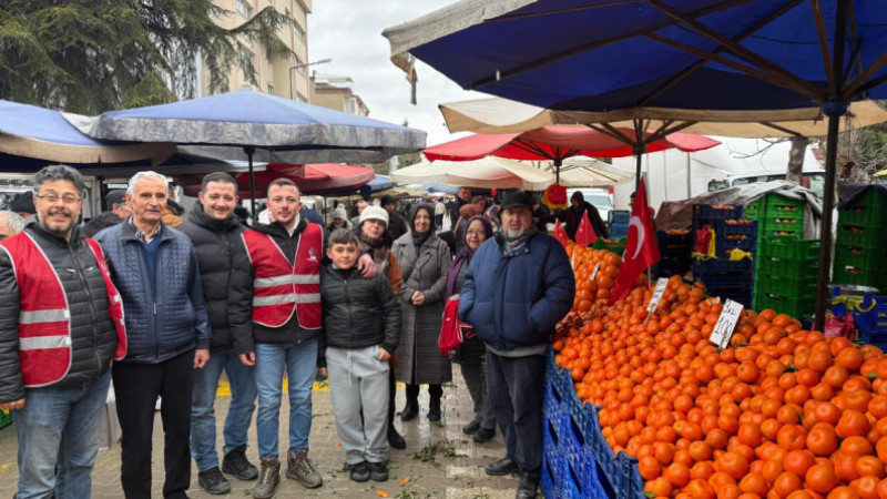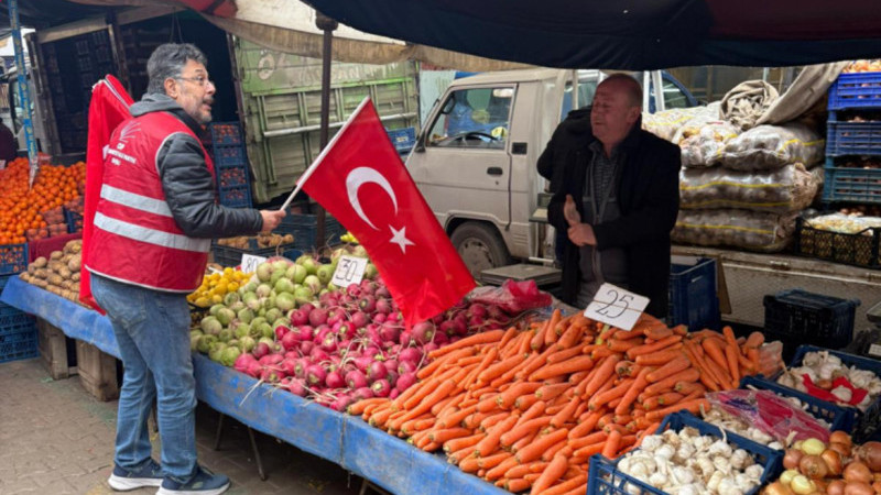 Tavşanlı'da pazar yerini ziyaret eden CHP İlçe Başkanı ve beraberindeki parti heyeti, tezgahları tek tek gezerek esnafa ve alışveriş yapan vatandaşlara şanlı Türk Bayrağı hediye etti. Etkinlik sırasında vatandaşların yoğun ilgi gösterdiği gözlenirken, pazar yeri kısa sürede al bayraklarla donatıldı.