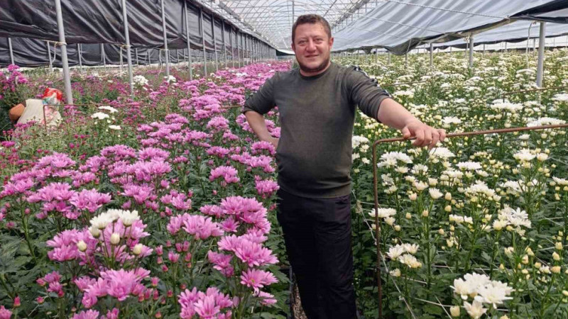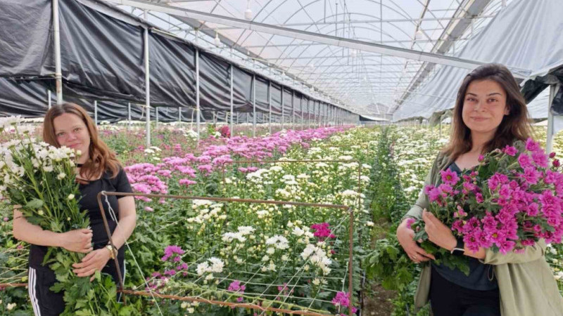 Simav ilçesinde jeotermal enerjiyle ısıtılan seralarda yetiştirilen kesme çiçekler Türkiye’nin dört bir yanına gönderilirken, krizantem (kasımpatı) hasadı başladı.