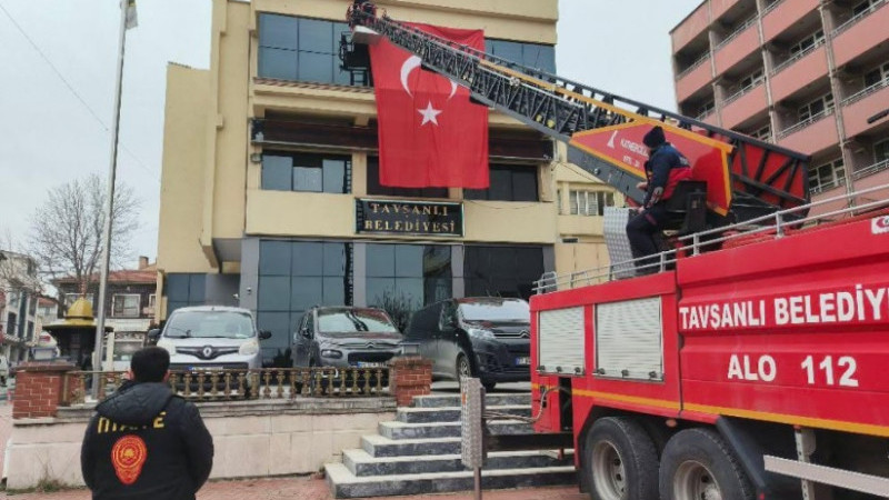 Tavşanlı Belediye Başkanlığı koordinesinde hareket eden itfaiye ekipleri, ilçenin dört bir yanındaki kamu binaları ve yüksek rakımlı noktalarda bayrak asma çalışması başlattı.