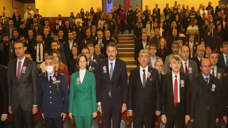 Öğretmeni anlatan en güzel kavramın rehber olduğunu ve o yol göstericiliğe olan ihtiyacın hiç bitmediğini belirten Vali Ali Çelik, “Hepimizin aslında nereye doğru gitmesi gerektiğine ilişkin o yön bulma duygumuzu güçlendiren, ne olmak istediğimize ilişkin arayışımızın asıl parçası olan şey benim kendi hayatımda da olduğu gibi öğretmenlerimiz. Bugün hepimiz de yaptığımız ne olursa olsun oraya evrilirken bir öğretmenin yol göstericiliğine, onun önümüzü açtığı yola, ufka ihtiyaç duyuyoruz. Belki de en güzel kavram o. Hepimizin önündeki rehberlersiniz. Bu nedenle hepimizin hayatına değer katmış, yol göstermiş, ışık olmuş bizim kim olmamız gerektiği sorusuna güzel cevaplar üretmiş değerli öğretmenlerimizin, Öğretmenler Günü’nü canı gönülden kutluyorum. Rabb'im yaptığınız görevin gereğini yapmayı nasip etsin sizlere” diye konuştu.